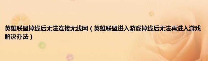 大家好,小常来为大家解答以上问题。英雄联盟掉线后无法连接无线网,英雄联盟进入游戏掉线后无法再进入游戏解决办法很多人还不知道,现在让我们一起来看看吧!