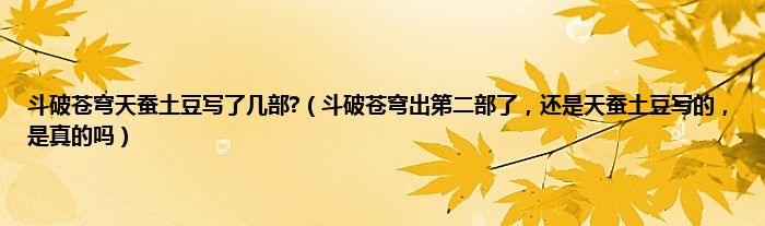大家好,小常来为大家解答以上问题。斗破苍穹天蚕土豆写了几部?,斗破苍穹出第二部了,还是天蚕土豆写的,是真的吗很多人还不知道,现在让我们一起来看看吧!