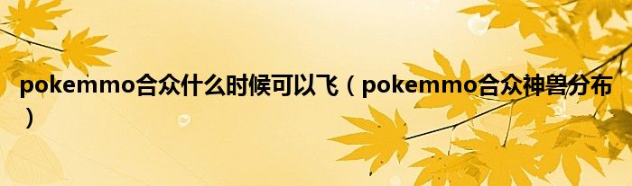 大家好,小常来为大家解答以上问题。pokemmo合众什么时候可以飞,pokemmo合众神兽分布很多人还不知道,现在让我们一起来看看吧!