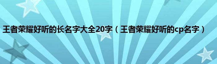 大家好,小常来为大家解答以上问题。王者荣耀好听的长名字大全20字,王者荣耀好听的cp名字很多人还不知道,现在让我们一起来看看吧!