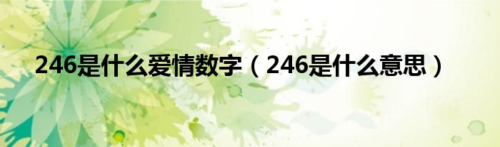 大家好,小常来为大家解答以上问题。246是什么爱情数字,246是什么意思很多人还不知道,现在让我们一起来看看吧!