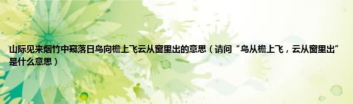 大家好,小常来为大家解答以上问题。山际见来烟竹中窥落日鸟向檐上飞云从窗里出的意思,请问“鸟从檐上飞,云从窗里出”是什么意思很多人还不知道,现在让我们一起来看看吧!