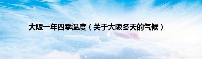 大家好,小常来为大家解答以上问题。大阪一年四季温度,关于大阪冬天的气候很多人还不知道,现在让我们一起来看看吧!