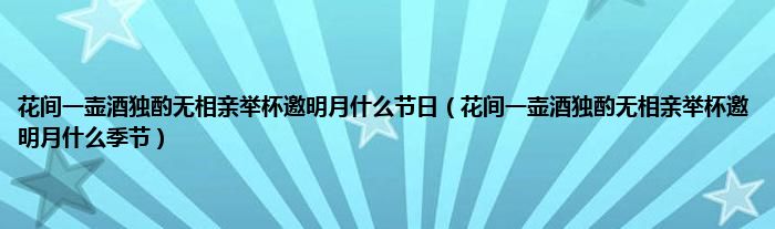 大家好,小常来为大家解答以上问题。花间一壶酒独酌无相亲举杯邀明月什么节日,花间一壶酒独酌无相亲举杯邀明月什么季节很多人还不知道,现在让我们一起来看看吧!