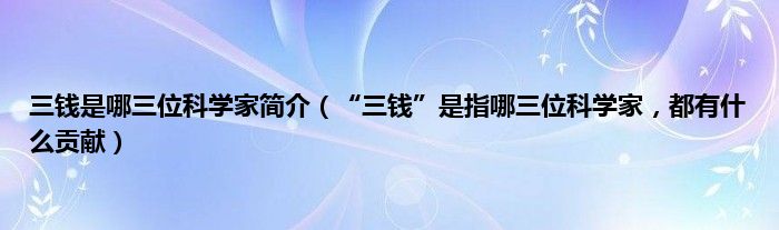 大家好,小常来为大家解答以上问题。三钱是哪三位科学家简介,“三钱”是指哪三位科学家,都有什么贡献很多人还不知道,现在让我们一起来看看吧!