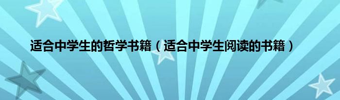 大家好,小常来为大家解答以上问题。适合中学生的哲学书籍,适合中学生阅读的书籍很多人还不知道,现在让我们一起来看看吧!