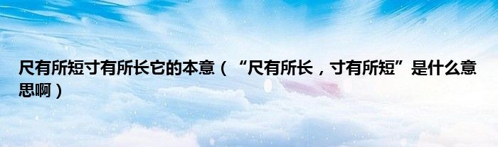 大家好,小常来为大家解答以上问题。尺有所短寸有所长它的本意,“尺有所长,寸有所短”是什么意思啊很多人还不知道,现在让我们一起来看看吧!