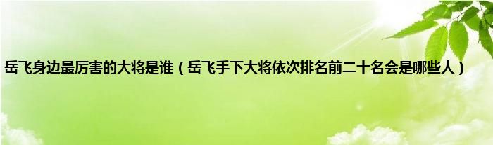 大家好,小常来为大家解答以上问题。岳飞身边最厉害的大将是谁,岳飞手下大将依次排名前二十名会是哪些人很多人还不知道,现在让我们一起来看看吧!