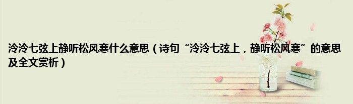 大家好,小常来为大家解答以上问题。泠泠七弦上静听松风寒什么意思,诗句“泠泠七弦上,静听松风寒”的意思及全文赏析很多人还不知道,现在让我们一起来看看吧!