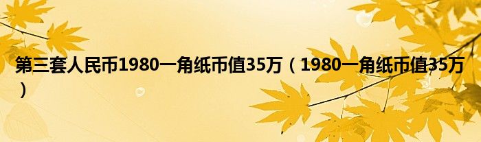 大家好,小常来为大家解答以上问题。第三套人民币1980一角纸币值35万,1980一角纸币值35万很多人还不知道,现在让我们一起来看看吧!