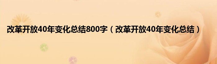 大家好,小常来为大家解答以上问题。改革开放40年变化总结800字,改革开放40年变化总结很多人还不知道,现在让我们一起来看看吧!