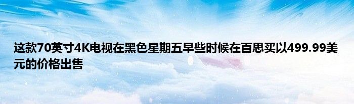 百思买今年将发布黑色星期五早期交易,我们在大屏幕4K电视上发现了一笔划算的交易。仅限今天,您可以以499.99美元(原价649.99美元)的价格购买Sharp 70英寸4K智能电视。这是150美元的折扣,对于大屏幕4K电视来说,这是一个不菲的价格。