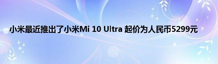 就技术规格而言,该智能手机配备了Qualcomm Snapdragon 865芯片组,高达16GB的RAM,高达512GB的内部存储,6.67英寸FHD + 120Hz显示屏以及一块支持最大电量的4500mAh内部电池。至120W快速充电。在摄像头方面,小米10 Ultra配有48MP + 48MP + 12MP + 20MP后置摄像头,而前置摄像头则有20MP自拍摄像头。
