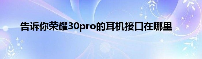 今天来聊聊一篇关于告诉你荣耀30pro的耳机接口在哪里的文章,现在就为大家来简单介绍下告诉你荣耀30pro的耳机接口在哪里,希望对各位小伙伴们有所帮助。