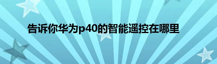 现在大家使用手机的频率越来越频繁,手机也为我们提供了许多的便利,今天小编也来说一下这个告诉你华为p40的智能遥控在哪里相关的文章,这个操作其实不复杂,接下来就给大家介绍一下告诉你华为p40的智能遥控在哪里,一起来看看吧: