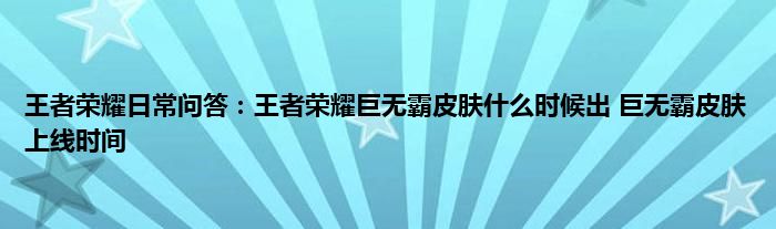 今天来聊聊关于王者荣耀日常问答:王者荣耀巨无霸皮肤什么时候出,巨无霸皮肤上线时间的文章,游戏是很多人的选择,但是游戏玩多了也会身心疲惫,现在就为大家来简单介绍下王者荣耀日常问答:王者荣耀巨无霸皮肤什么时候出,巨无霸皮肤上线时间,希望对各位小伙伴们有所帮助。