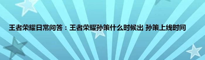 今天来聊聊关于王者荣耀日常问答:王者荣耀孙策什么时候出,孙策上线时间的文章,游戏是很多人的选择,但是游戏玩多了也会身心疲惫,现在就为大家来简单介绍下王者荣耀日常问答:王者荣耀孙策什么时候出,孙策上线时间,希望对各位小伙伴们有所帮助。