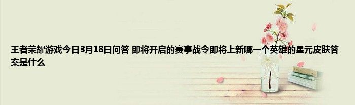 今天来聊聊关于王者荣耀游戏今日3月18日问答 即将开启的赛事战令即将上新哪一个英雄的星元皮肤答案是什么的文章,游戏是很多人的选择,但是游戏玩多了也会身心疲惫,现在就为大家来简单介绍下王者荣耀游戏今日3月18日问答 即将开启的赛事战令即将上新哪一个英雄的星元皮肤答案是什么,希望对各位小伙伴们有所帮助。