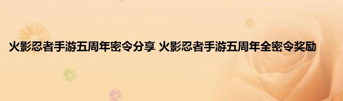 火影忍者手游周年密令有哪些?火影忍者手游游戏已经上线了五周年的活动内容,这次的周年活动也有一些福利给玩家。比如五周年的密令奖励等,这次的密令奖励具体要怎么获得呢?下面就是五周年庆周年密令活动密令汇总。