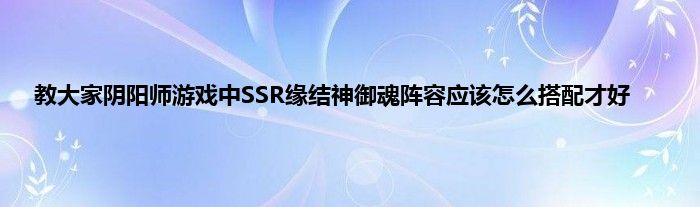 今天弟哥来聊聊一篇关于阴阳师游戏中SSR缘结神御魂阵容应该怎么搭配才好的文章,游戏是很多人的选择,但是游戏玩多了也会身心疲惫,现在就为大家来简单介绍下阴阳师游戏中SSR缘结神御魂阵容应该怎么搭配才好,希望对各位小伙伴们有所帮助。