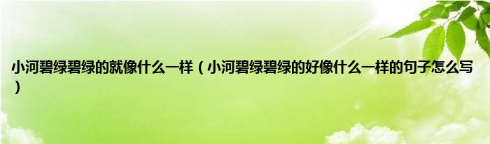 大家好,小科来为大家解答以上问题。小河碧绿碧绿的就像什么一样,小河碧绿碧绿的好像什么一样的句子怎么写很多人还不知道,现在让我们一起来看看吧!
