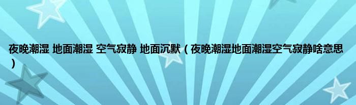 大家好,小科来为大家解答以上问题。夜晚潮湿 地面潮湿 空气寂静 地面沉默,夜晚潮湿地面潮湿空气寂静啥意思很多人还不知道,现在让我们一起来看看吧!