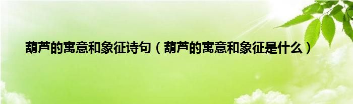 大家好,小科来为大家解答以上问题。葫芦的寓意和象征诗句,葫芦的寓意和象征是什么很多人还不知道,现在让我们一起来看看吧!