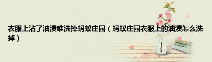 大家好,小科来为大家解答以上问题。衣服上沾了油渍难洗掉蚂蚁庄园,蚂蚁庄园衣服上的油渍怎么洗掉很多人还不知道,现在让我们一起来看看吧!