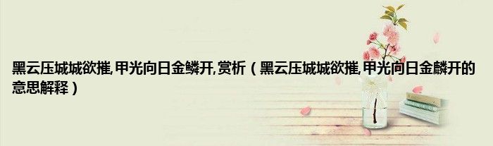 大家好,小科来为大家解答以上问题。黑云压城城欲摧,甲光向日金鳞开,赏析,黑云压城城欲摧,甲光向日金麟开的意思解释很多人还不知道,现在让我们一起来看看吧!