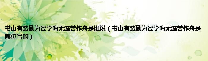 大家好,小科来为大家解答以上问题。书山有路勤为径学海无涯苦作舟是谁说,书山有路勤为径学海无涯苦作舟是哪位写的很多人还不知道,现在让我们一起来看看吧!