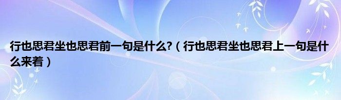 1、 行也思君坐也思君上一句是什么来着.答案是:走路的时候想你,坐着的时候想你。