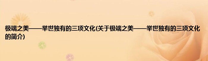 大家好,极端之美——举世独有的三项文化,关于极端之美——举世独有的三项文化的简介很多人还不知道,现在让我们一起来看看吧!