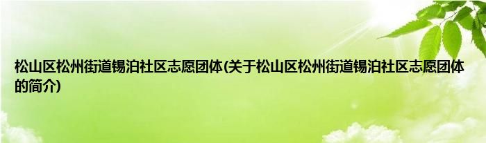 1、 松山区松州街道锡泊社区志愿团体是由松山区志愿者联合会领导下的志愿团体。