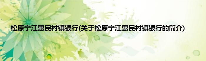 本文关于松原宁江惠民村镇银行的简介就讲解完毕,希望对大家有所帮助。