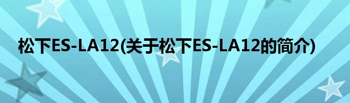 大家好,松下ES-LA12,关于松下ES-LA12的简介很多人还不知道,现在让我们一起来看看吧!