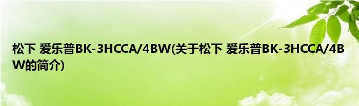 本文关于松下 爱乐普BK-3HCCA/4BW的简介就讲解完毕,希望对大家有所帮助。