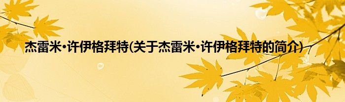 本文关于杰雷米·许伊格拜特的简介就讲解完毕,希望对大家有所帮助。