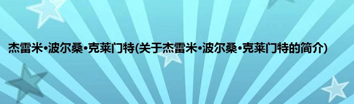 本文关于杰雷米·波尔桑·克莱门特的简介就讲解完毕,希望对大家有所帮助。