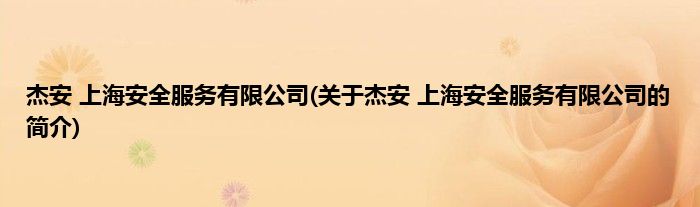 本文关于杰安 上海安全服务有限公司的简介就讲解完毕,希望对大家有所帮助。