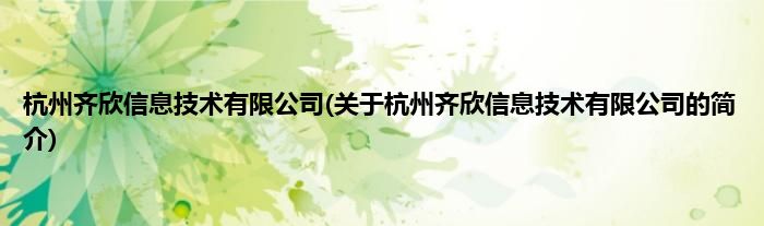 本文关于杭州齐欣信息技术有限公司的简介就讲解完毕,希望对大家有所帮助。