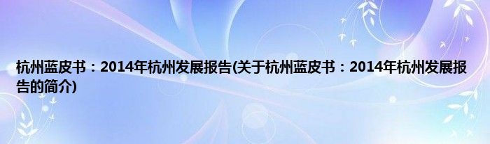 1、 《杭州蓝皮书:2014年杭州发展报告》是2014年1月杭州出版社出版的图书。