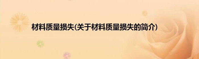 大家好,材料质量损失,关于材料质量损失的简介很多人还不知道,现在让我们一起来看看吧!