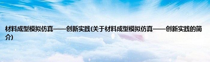 材料成型模拟仿真——创新实践(关于材料成型模拟仿真——创新实践的简介)