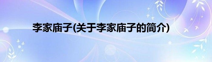 大家好,李家庙子,关于李家庙子的简介很多人还不知道,现在让我们一起来看看吧!