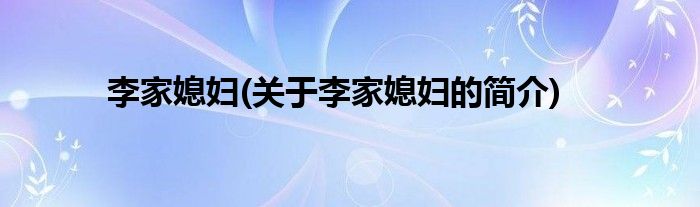 本文关于李家媳妇的简介就讲解完毕,希望对大家有所帮助。