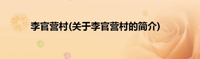 大家好,李官营村,关于李官营村的简介很多人还不知道,现在让我们一起来看看吧!