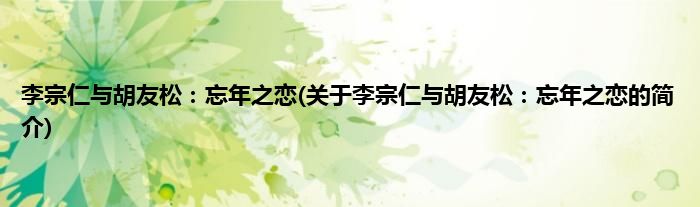 本文关于李宗仁与胡友松:忘年之恋的简介就讲解完毕,希望对大家有所帮助。