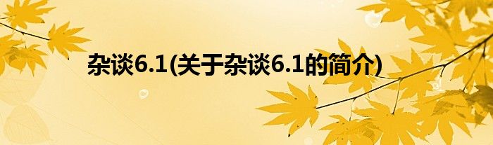 大家好,杂谈6.1,关于杂谈6.1的简介很多人还不知道,现在让我们一起来看看吧!