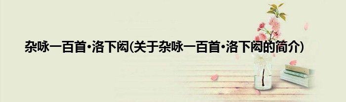 本文关于杂咏一百首·洛下闳的简介就讲解完毕,希望对大家有所帮助。