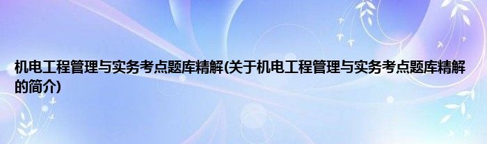 本文关于机电工程管理与实务考点题库精解的简介就讲解完毕,希望对大家有所帮助。
